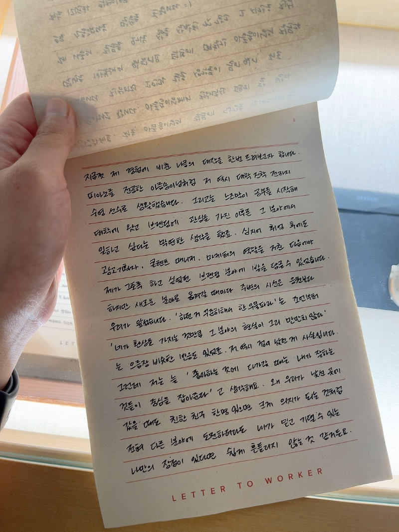 그리고 다음은 제가 데스커 라운지에서 가장 좋았던, "선후배와의 편지" 입니다.