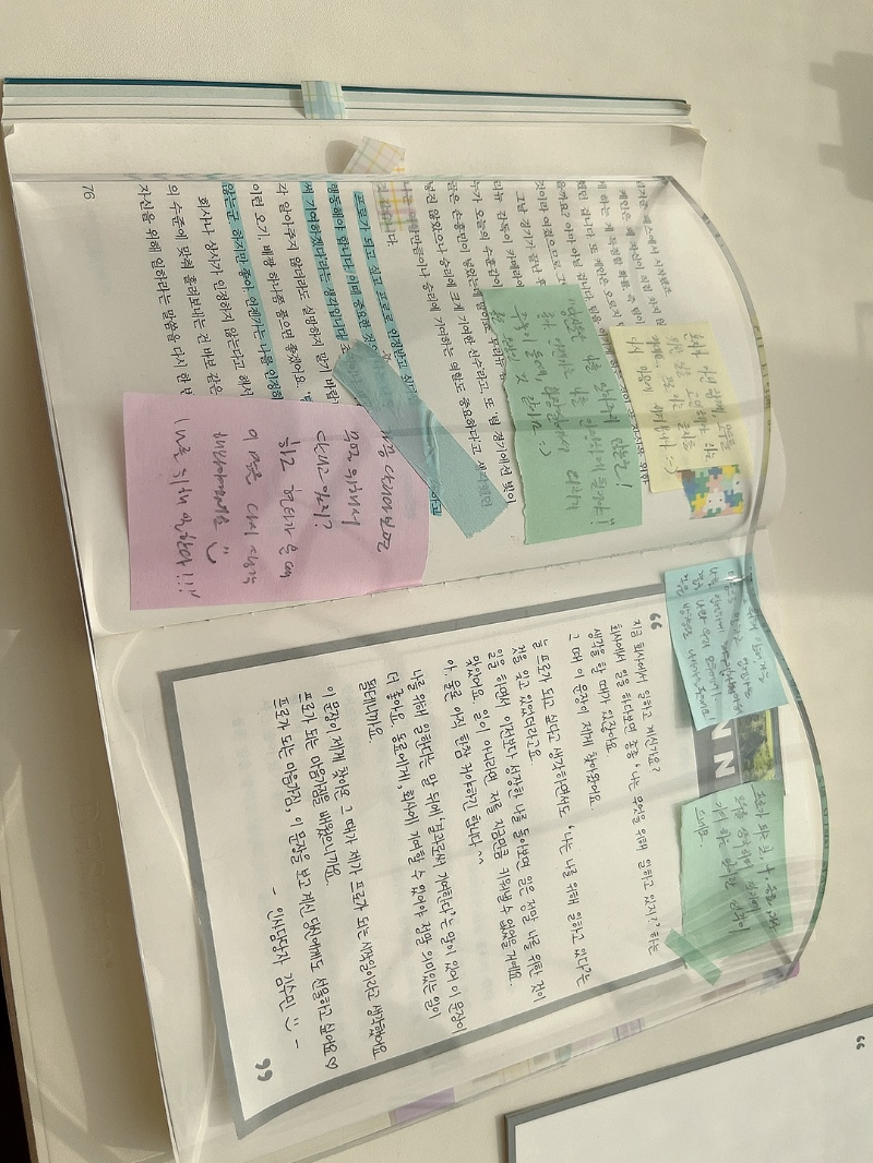 먼저, 사람들이 책에서 어떤 부분이 좋았는지 하이라이팅하고, 그게 왜 와닿았는지 적어놓는 공간이 있었어요!